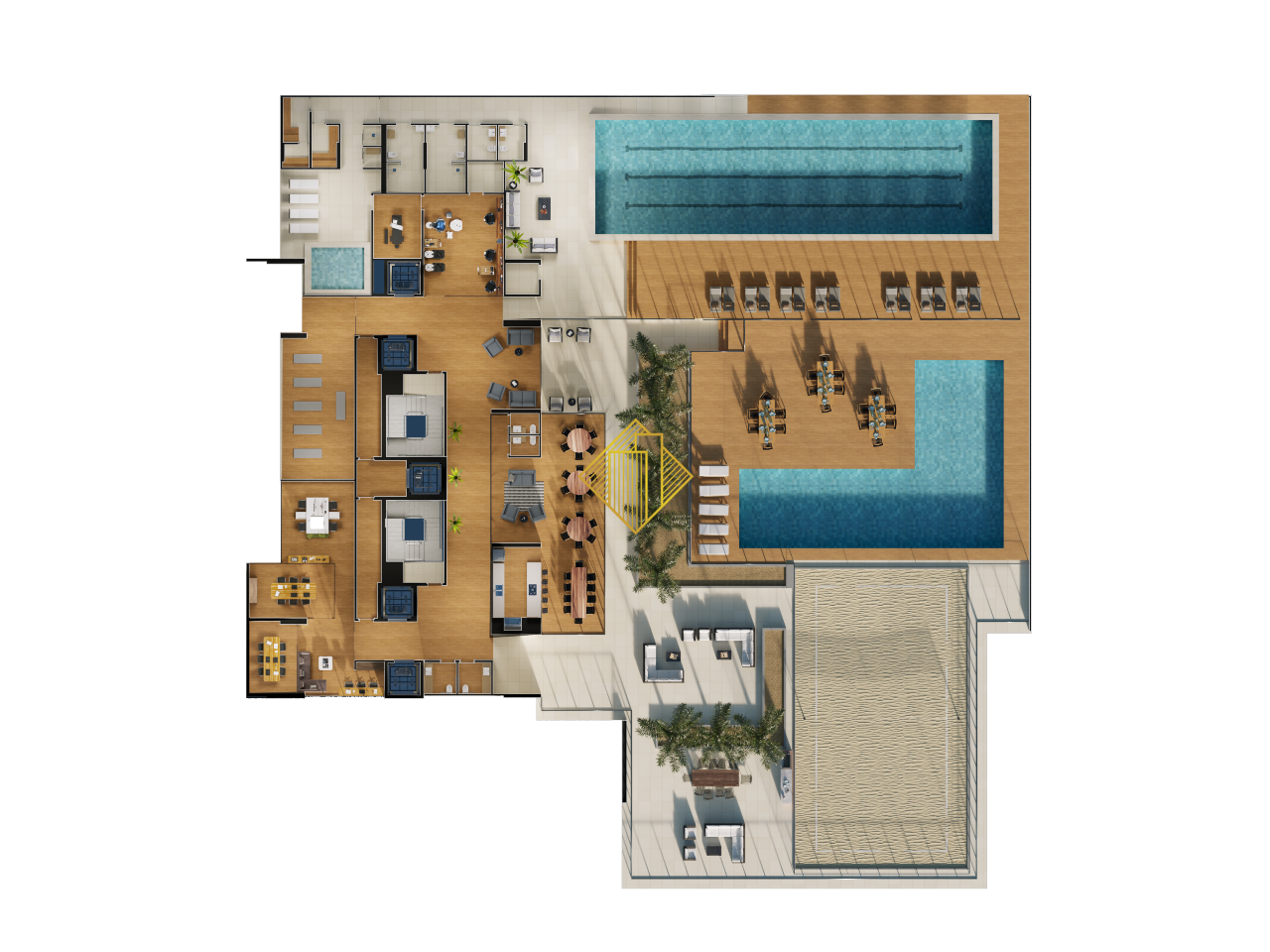 Com 37 andares, 4 tipos de planta o empreendimento conta espaços vividos por toda a sua estrutura, possuindo a melhor rentabilidade seja para morar ou para locação. O destaque fica por conta de incrível Gourmet Rooftop, que possui piscina exclusiva, um espaço gourmet de alto padrão, cinema e uma vista estonteante 360º de toda cidade de Cascavel.