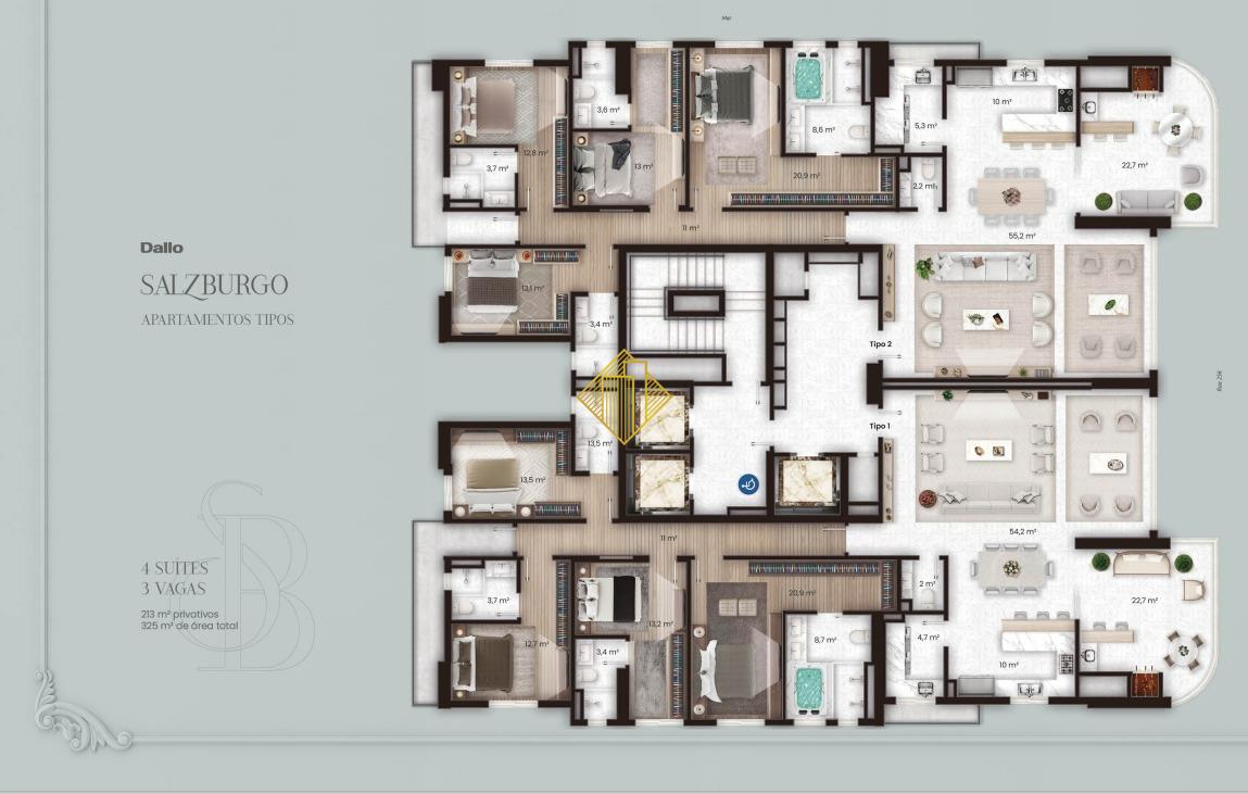 O Salzburgo é uma iniciativa da Dallo, localizado na Meia Praia em Itapema, a apenas 190 m da praia. O edifício é o 35º empreendimento da construtora e a grandiosidade desse marco é refletida no design do empreendimento, inspirado no encantador estilo austríaco do período clássico.