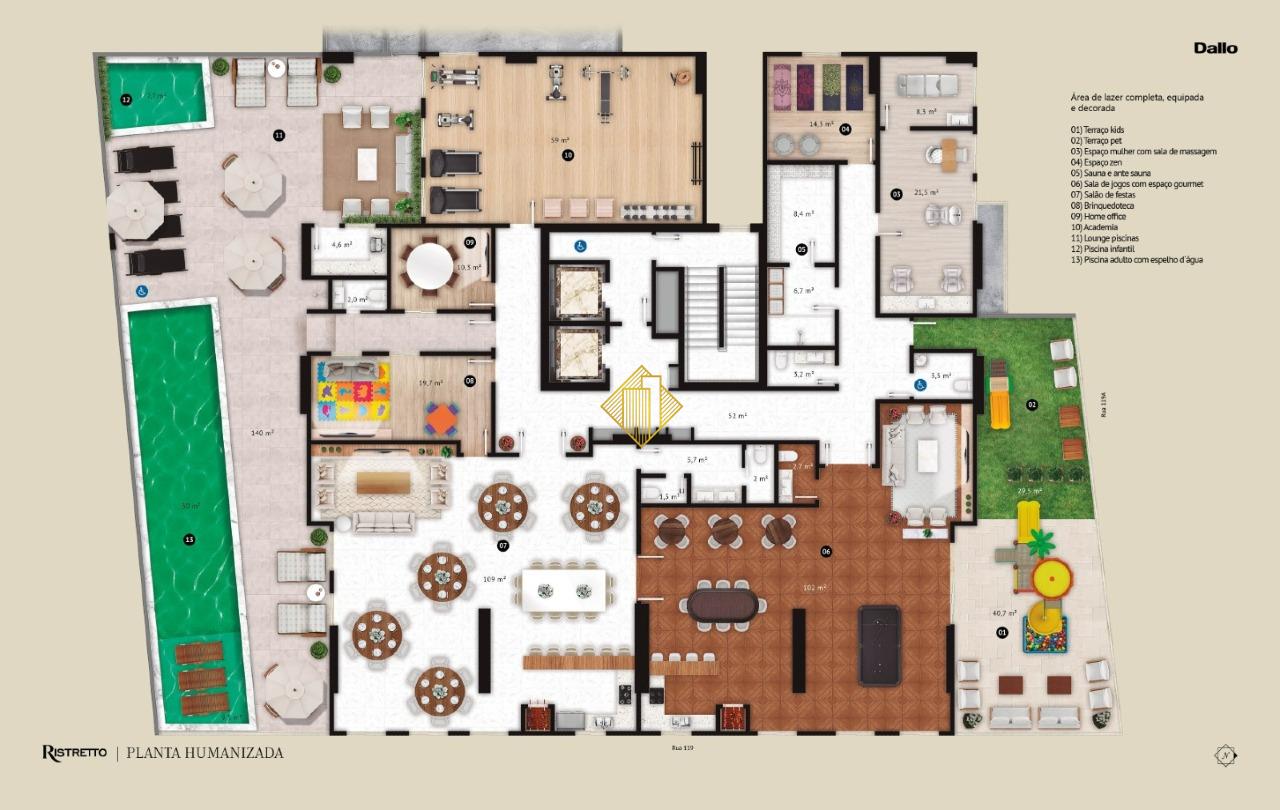 Área de lazer completa com: