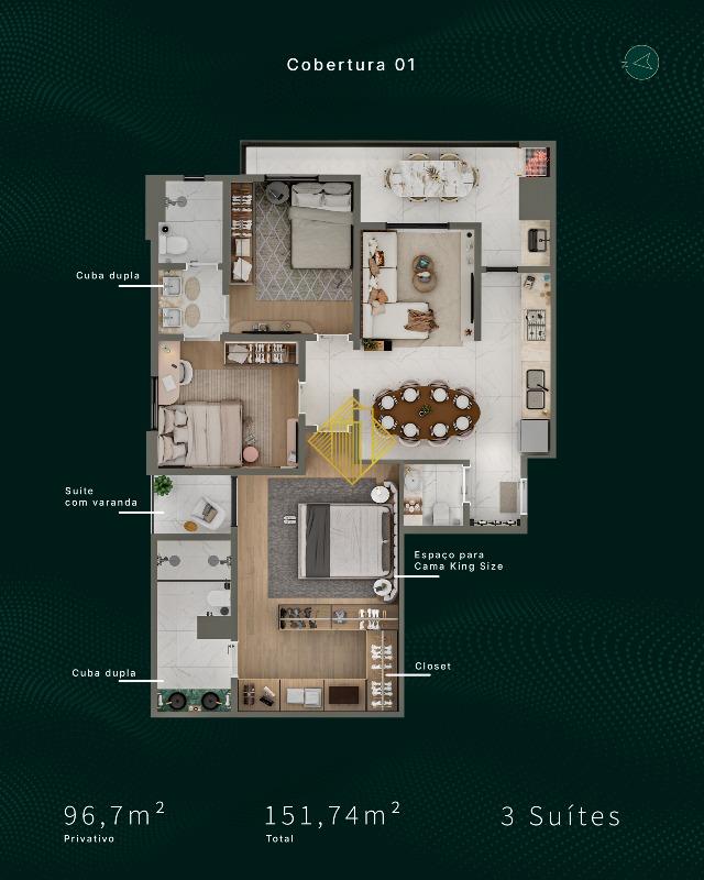- 1 suíte com sacada + 2 demi suítes - todas com piso vinílico,