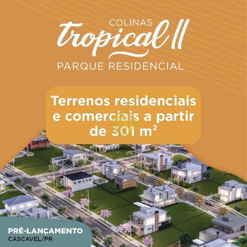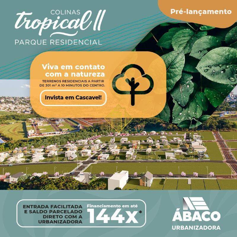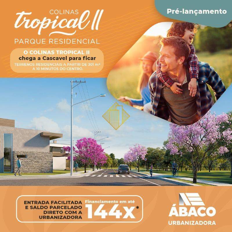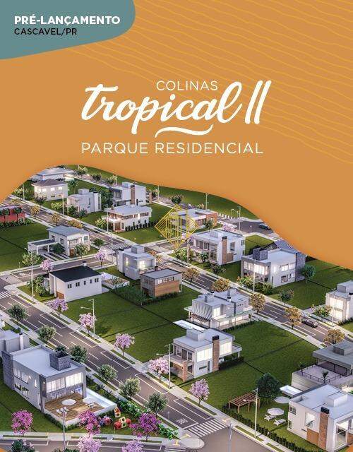O Colinas Tropical II chega em Cascavel para ficar. São terrenos residenciais e comerciais, a partir de 300m². E o melhor, com localização estratégica, a 10 minutos do centro! São 147 terrenos disponíveis. Invista em Cascavel e viva em contato com a natureza.