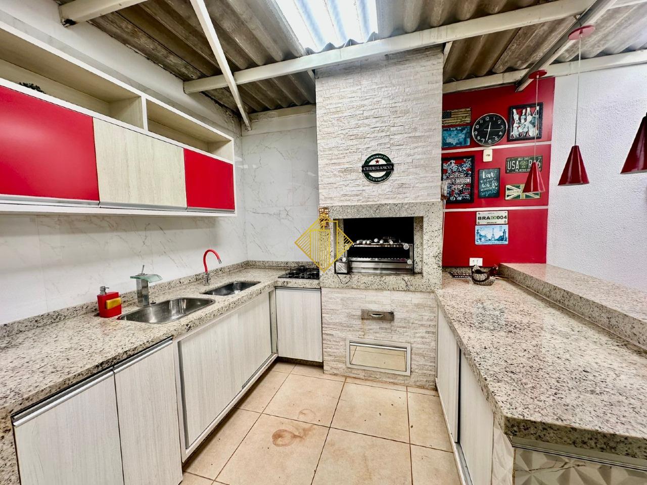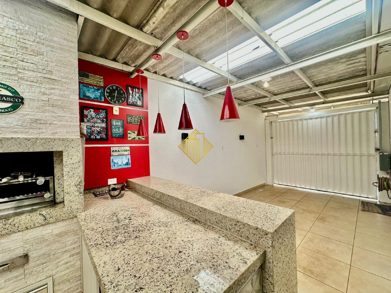 O imóvel conta com 1 suíte e 1 quarto, cozinha equipada, sala de estar, sala de jantar, banheiro, área gourmet e churrasqueira, além de 2 vagas de garagem.